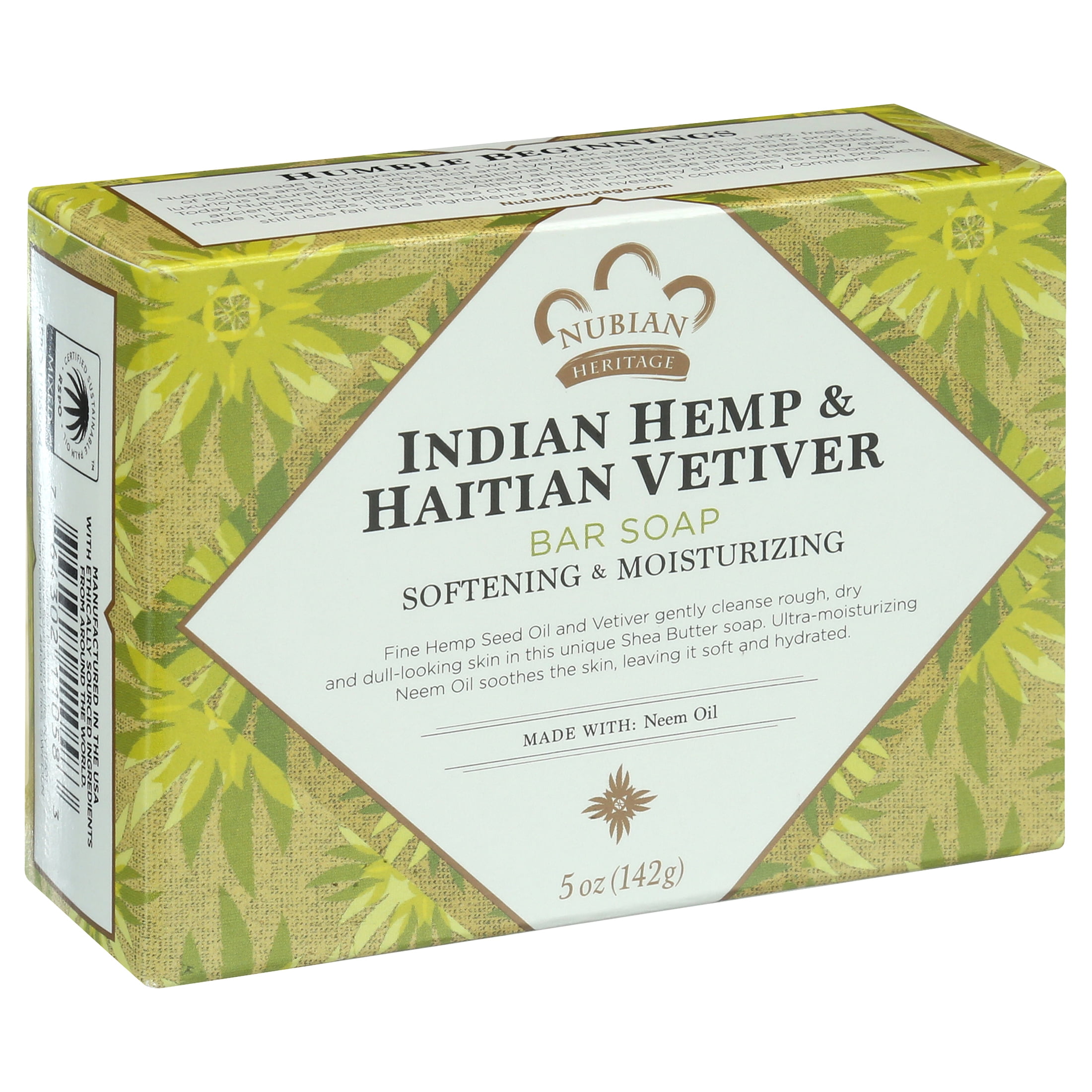 Indian Hemp Haitian Vetiver Soap Nubian Heritage 5 Oz Bar Walmart Com